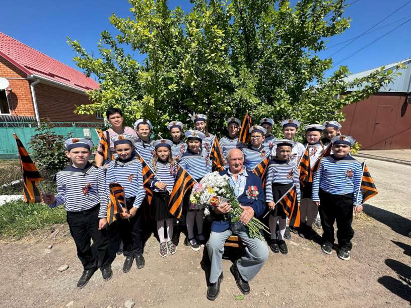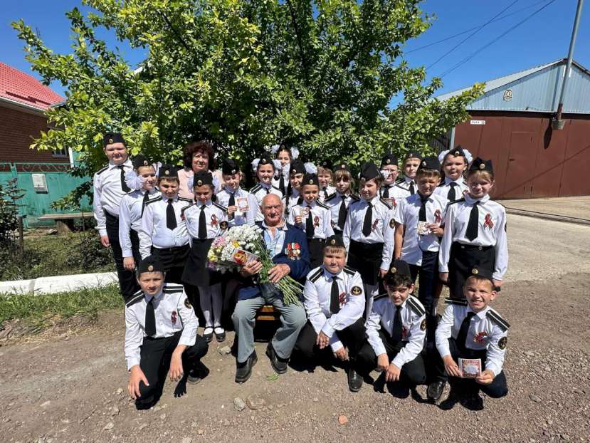 В преддверии Дня Победы юнармейские отряды МБОУ Егорлыкской школы №7 им. О. Казанского присоединились к Всероссийской патриотической акции «Парад у дома ветерана».