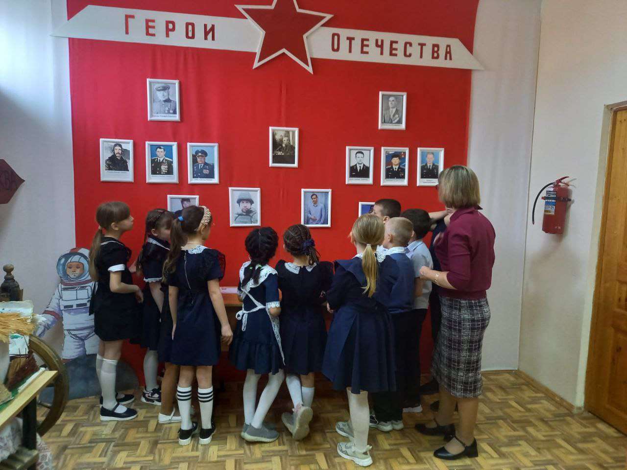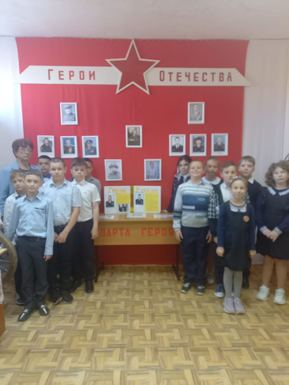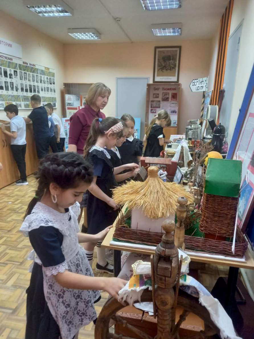 В школьном музее МБОУ ЕСОШ 7 им.О. Казанского в рамках патриотического воспитания школьников членами кружка "Музейное дело" оформлена экспозиция "Герои Отечества", посвященная знаменитым землякам ст. Егорлыкской. На ней представлены портреты участников Великой Отечественной войны, Афганистана, Чеченской войны, ставшие героями Советского Союза и России. Установлена Парта героев СВО. Подготовлена экспозиция воинов - выпускников нашей школы, погибших во время проведения специальной военной операции на Украине.